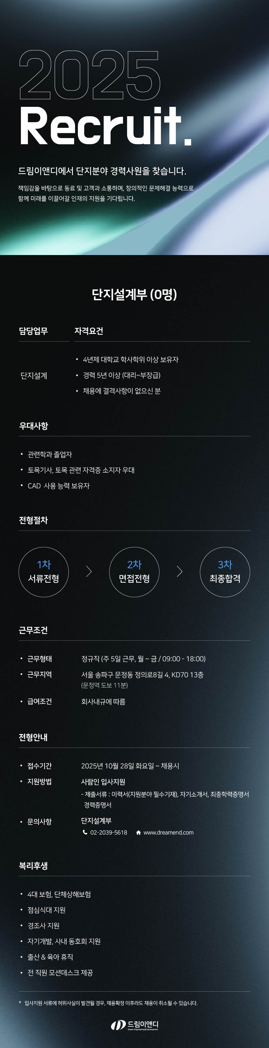 [단지분야] 경력사원 모집(단지설계부/서울지사)